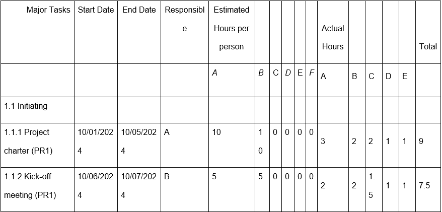 Task 7: Prepare a Responsibility Assignment Matrix (RACI Chart) for the WBS