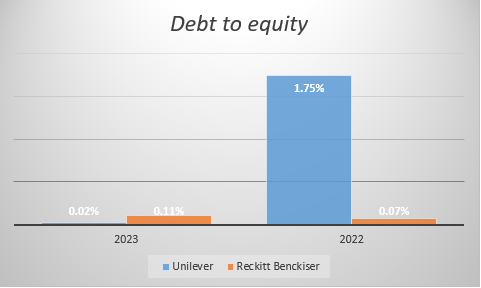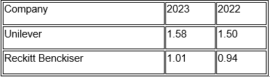 Reckitt Benckiser, meanwhile, is lower on this metric, increasing modestly from 0.94 to 1.01. This indicates a somewhat more equitable capital structure with lower financial risk compared to Unilever.