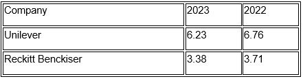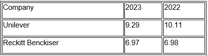 Unilever and Reckitt Benckiser both have current ratios below 1, indicating potential liquidity challenges. Nonetheless, Unilever’s current ratio of 0.76 in 2023 is higher than Reckitt’s 0.64, indicating that Unilever is in a relatively better position to cover its short-term obligations. The slight increase in the Unilever ratio from 0.75 to 0.76 indicates that liquidity management improved marginally. The slight change from the 0.63 to 0.64 in Reckitt’s case suggests it is still running with lean liquidity.