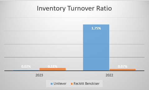 But in terms of inventory turnover (unlike days inventory outstanding), Unilever is a clear winner (6.23 in 2023) against Reckitt Benckiser (3.38) indicating that Unilever moves its inventory faster and it has a better stock management. Notes: This efficiency can stem from improved supply chain management, higher product demand, or efficient sales processes.