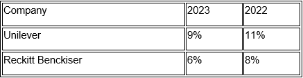 The rising inflation has also increase raw material, labor and logistics costs, which has affected profitability of both Unilever and Reckitt Benckiser. Rising production costs have prompted price increases that may diminish consumer demand. Disrupted supply chains amid geopolitical tensions, climbing fuel prices and transportation bottlenecks have added to margin pressure (Unilever 2023). Companies need to fine-tune inventory management and avoid excessive reliance on costly raw materials.