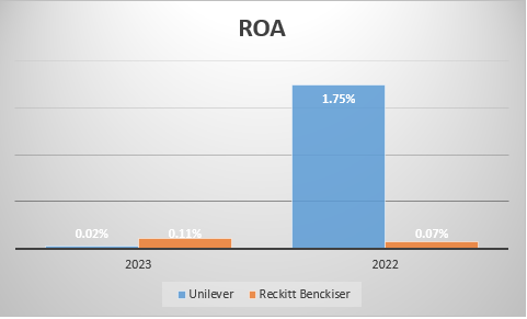 For instance, the ROA of Reckitt Benckiser decreased from 8% to 6% indicating deteriorating asset utilization efficiency. Rising costs and the possibility that new investments did not come in as strongly as first forecasted may have drove the decrease. A lower ROA indicates that Reckitt is struggling to transform its assets into revenue, in comparison to its peers (Reckitt. 2023).