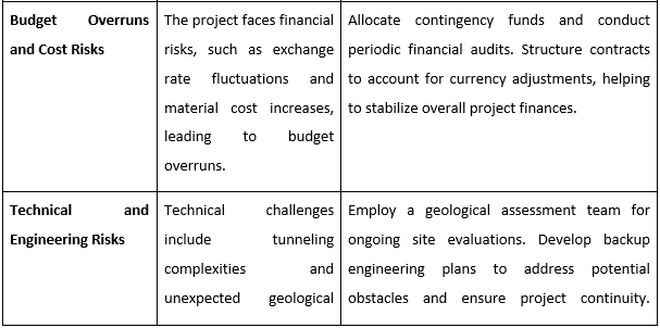 Quality control ensures that Snowy Hydro 2.0 meets the technical standards required for reliability and safety. Regular audits and inspections are essential across each project phase to uphold quality benchmarks. Assigning each partner specific quality targets for their roles encourages accountability. For example, Voith Group’s hydroelectric equipment should undergo stringent testing for durability (Voith, 2024). There are risks that need to be mitigated, and include quality, environmental, and international partner collaboration to ensure success in the project. Lane Constructions should maintain quality standards in tunnel construction, ensuring structural integrity. Periodic site inspections allow the project manager to confirm adherence to project specifications. Consistent quality monitoring can prevent delays caused by rework or defects in equipment and infrastructure.