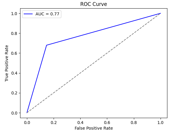 • A higher AUC would reflect higher separability of the two classes, but the current score shows that the model is reasonably effective at wine quality separation.
