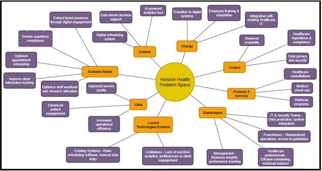 At a time when digital and AI are disrupting value chains across industries, Horizon Health seeks to leverage digital solutions to improve operational effectiveness and service delivery. This report discusses the current business environment of this organization and analyses the role that could play to attain these goals. The analysis is then done systematically through the application of the Business Analysis Core Concept Model (BACCM) to describe the problem scope. SWOT offers the assessment of internal strengths and weaknesses of Horizon Health together with the opportunities and threats present in the external environment in creating the TOWS-based technology strategies. Moreover, a stakeholder analysis evaluates potential and active organisms involved with a new analytics tool to enhance the decision-making process when managing the client. The findings will assist in making strategic suggestions that correspond to the hypothesis that Horizon Health’s digital plans should correlate with total business objectives for market differentiation.