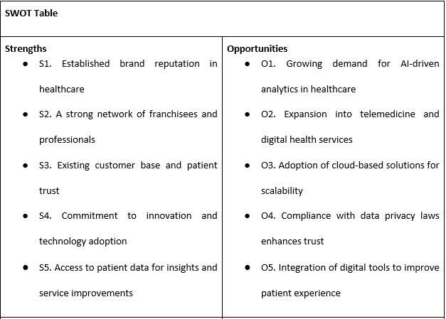 Table 1: SWOT analysis